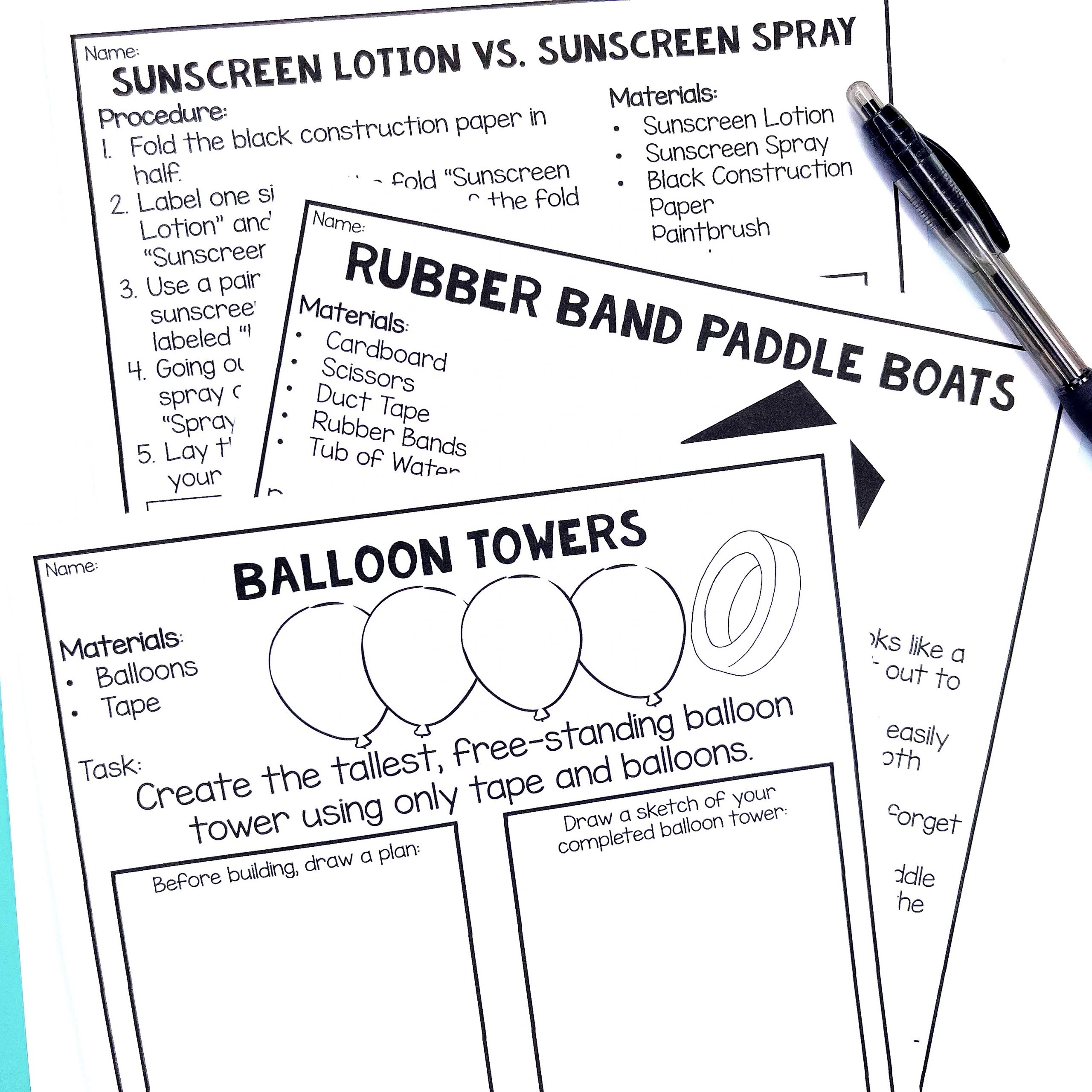 These science experiments are really great for the end of the year. Still, you can even use them at the beginning of the year to help introduce your students to science stations, or even teamwork, communication, and other skills needed to complete different science labs! These activities are perfect for students and get them using hands-on investigation skills even during the last (or first) few weeks (or days) of school!