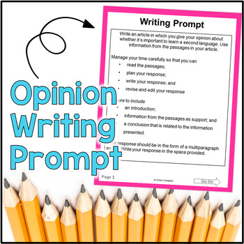 Use these paired passages about second languages with a highly engaging writing prompt to keep students on task during your dreaded writing block! Students will read the two sources and the writing prompt, plan out their essay, and write a four- or five-paragraph essay about their opinion on the topic. Opinion writing prompts using articles are the best way for students to practice writing skills.