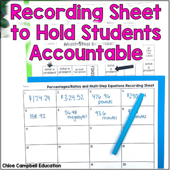 You found the perfect percentages and ratios game! Your 7th grade students will LOVE practicing or reviewing multi-step percentages and ratios word problems. Students will answer 20 questions in the game. Students will apply previous understanding of percentages and ratios to solve multi-step real-world percent problems.